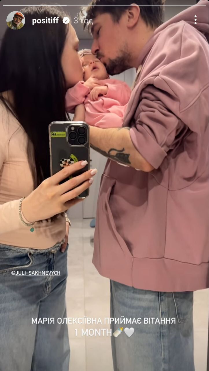 Украинский певец Позитив (Алексей Завгородний) 27 января в Instagram Stories показал видео, в котором изображен с женой и одномесячной дочерью Марией.