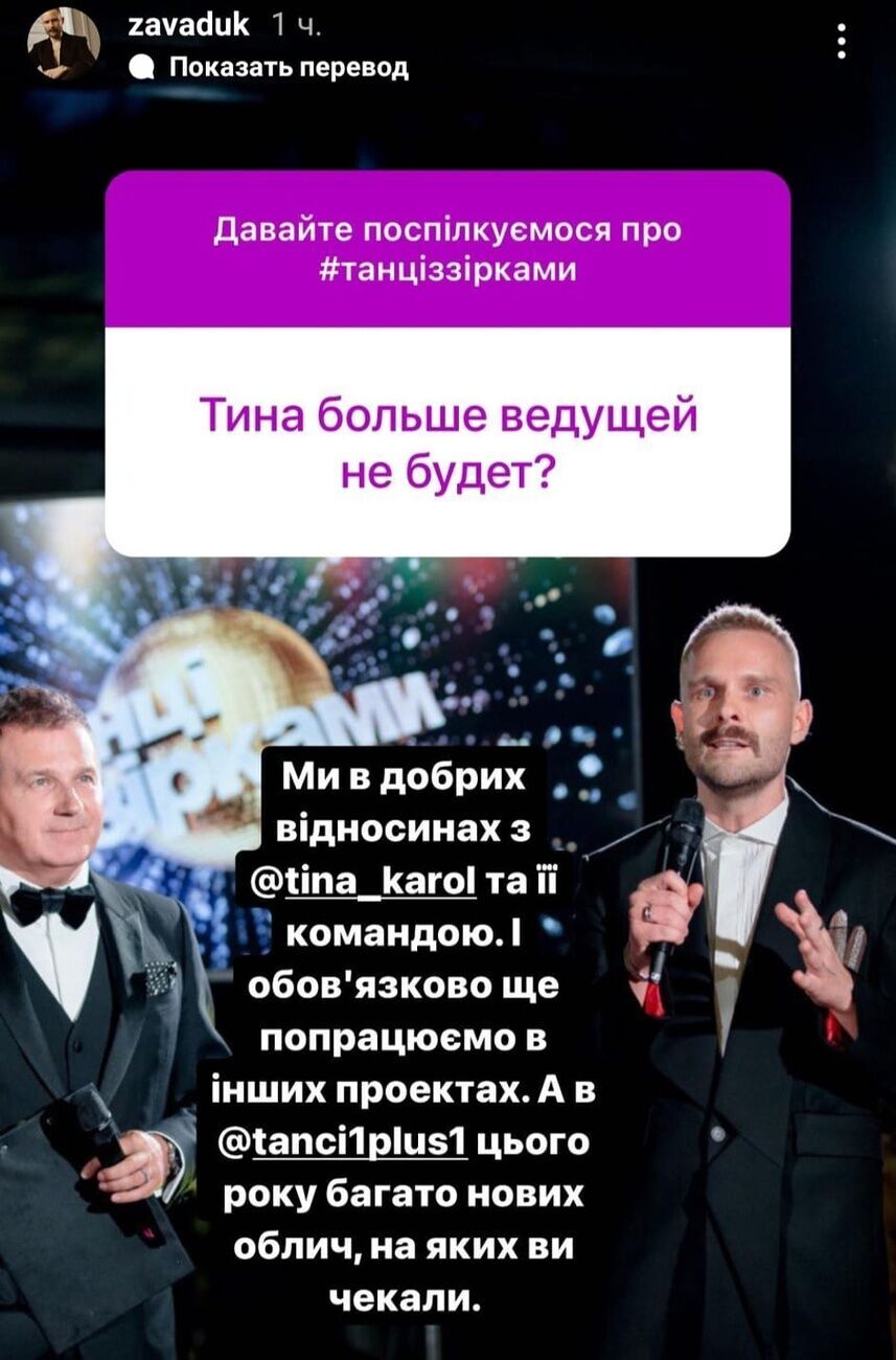 "Тина больше не будет ведущей?" – поинтересовались пользователи сети у Завадюка.