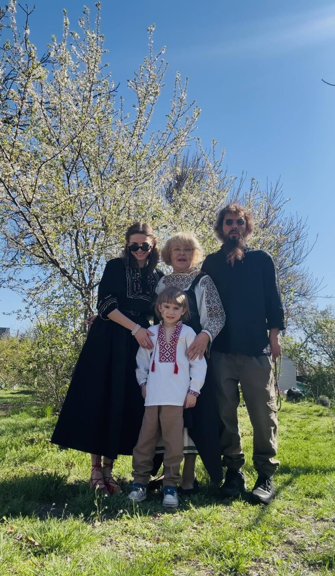 На фото Роговцева зафиксирована с правнуком, внуком и его женой Викторией Степанковой.