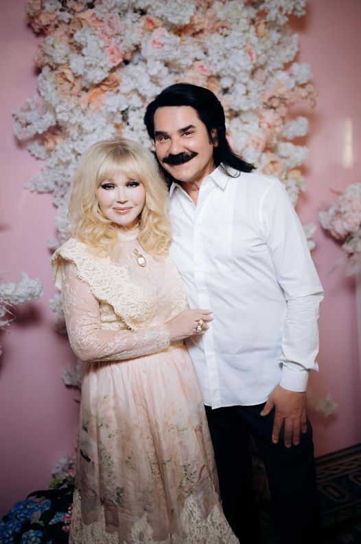 На фото Зибров запечатлен в черных брюках и белой рубашке, а его жена – в кружевном платье светло-абрикосового оттенка.