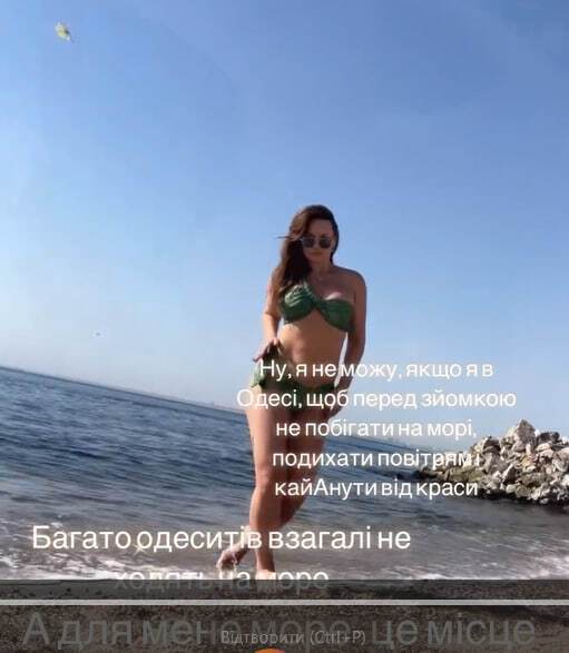 "Ну я не могу, если я в Одессе, чтобы перед съемкой не прибежать на море, подышать воздухом, кайфонуть от красоты", – подписала она ролик.
