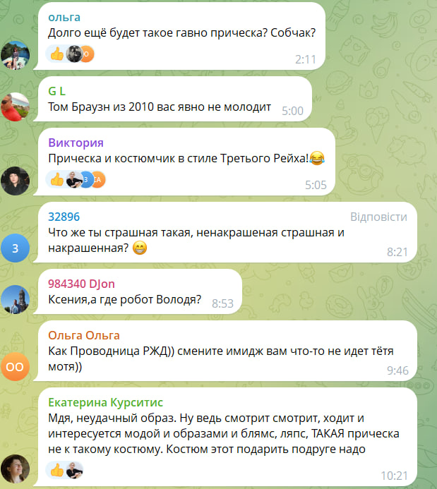 "Как проводница РЖД. Смените имидж, вам не идет", – написали в сети.