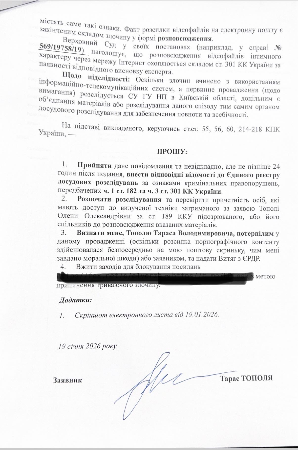 Тарас Тополя заявил, что обратился в полицию, сообщив правоохранителям о распространении материалов порнографического характера.