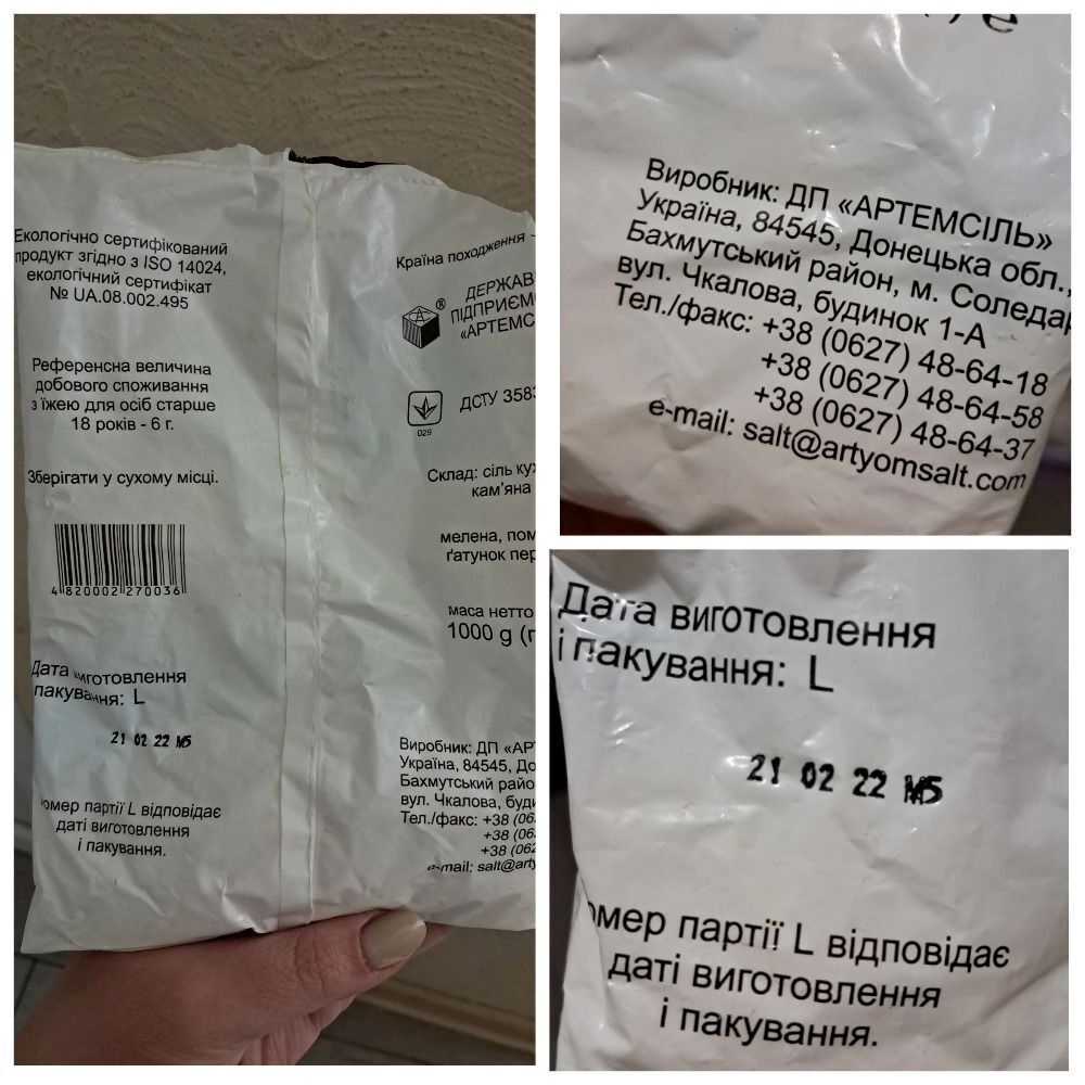 Украинский блогер ropebunny47 2 октября в соцсети Threads разместила фото пачки соли, которая была изготовлена на заводе "Артемсоль", расположенном в городе Соледар Донецкой области, за три дня до полномасштабного вторжения страны-агрессора РФ в Украину.