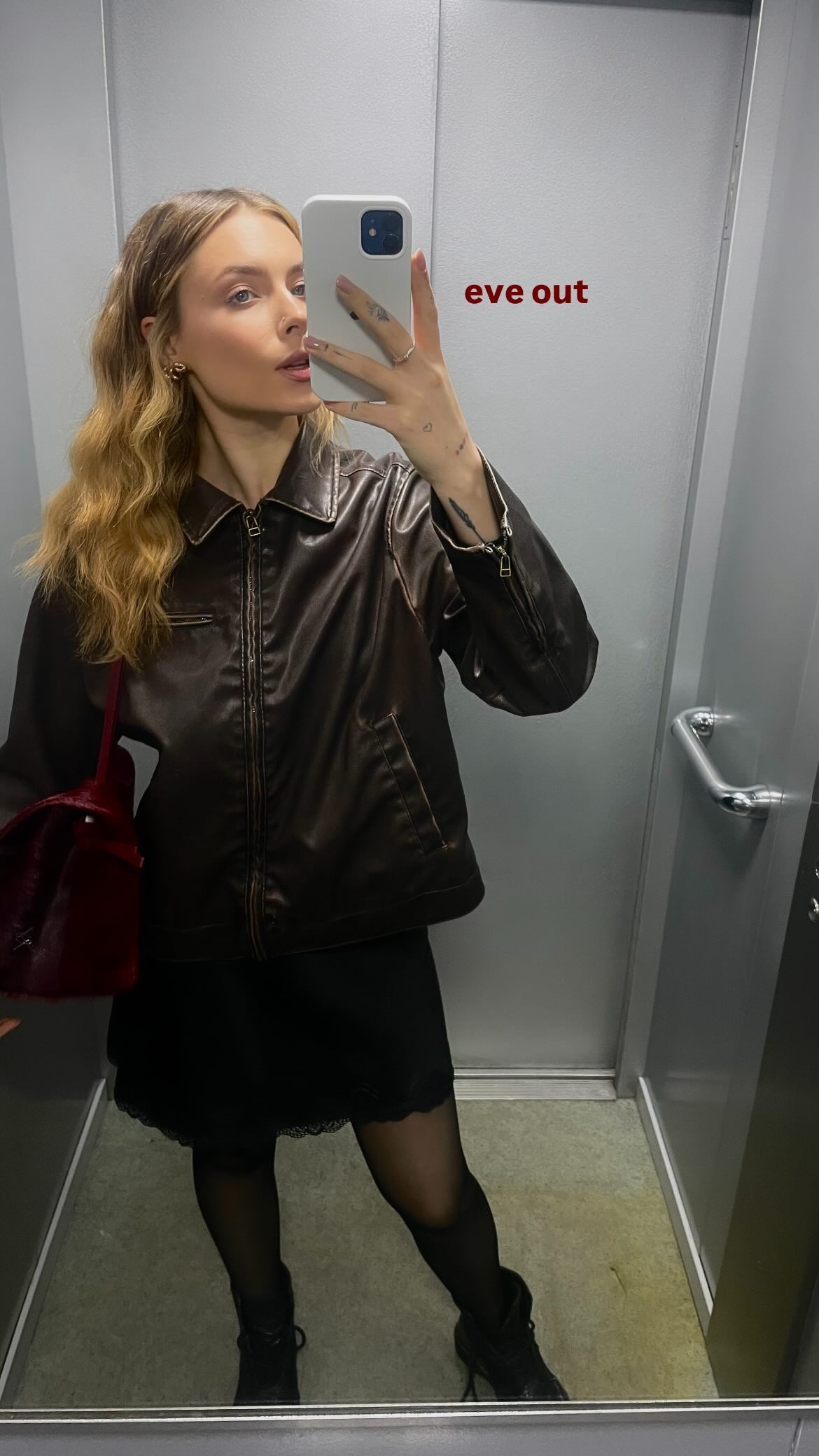 Она позировала в лифте, стоя перед большим зеркалом. Девушка показала свою фигуру во весь рост.