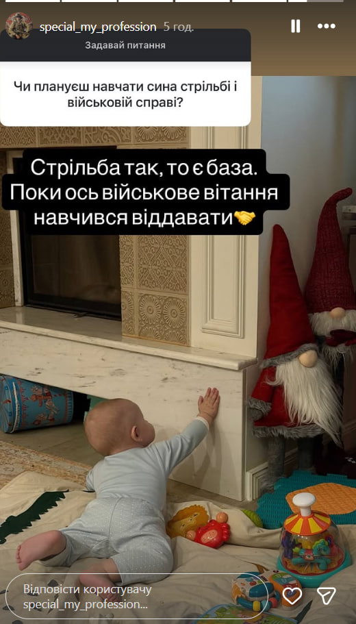 "Стрельба – база". Жених Никитюк показал, какому воинскому приветствию научился его семимесячный сын