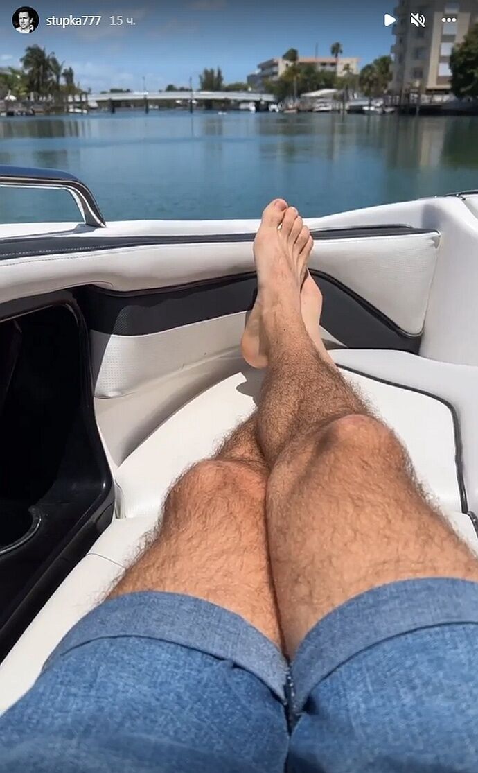 Также он показал ноги своей спутницы, находящейся на яхте рядом.