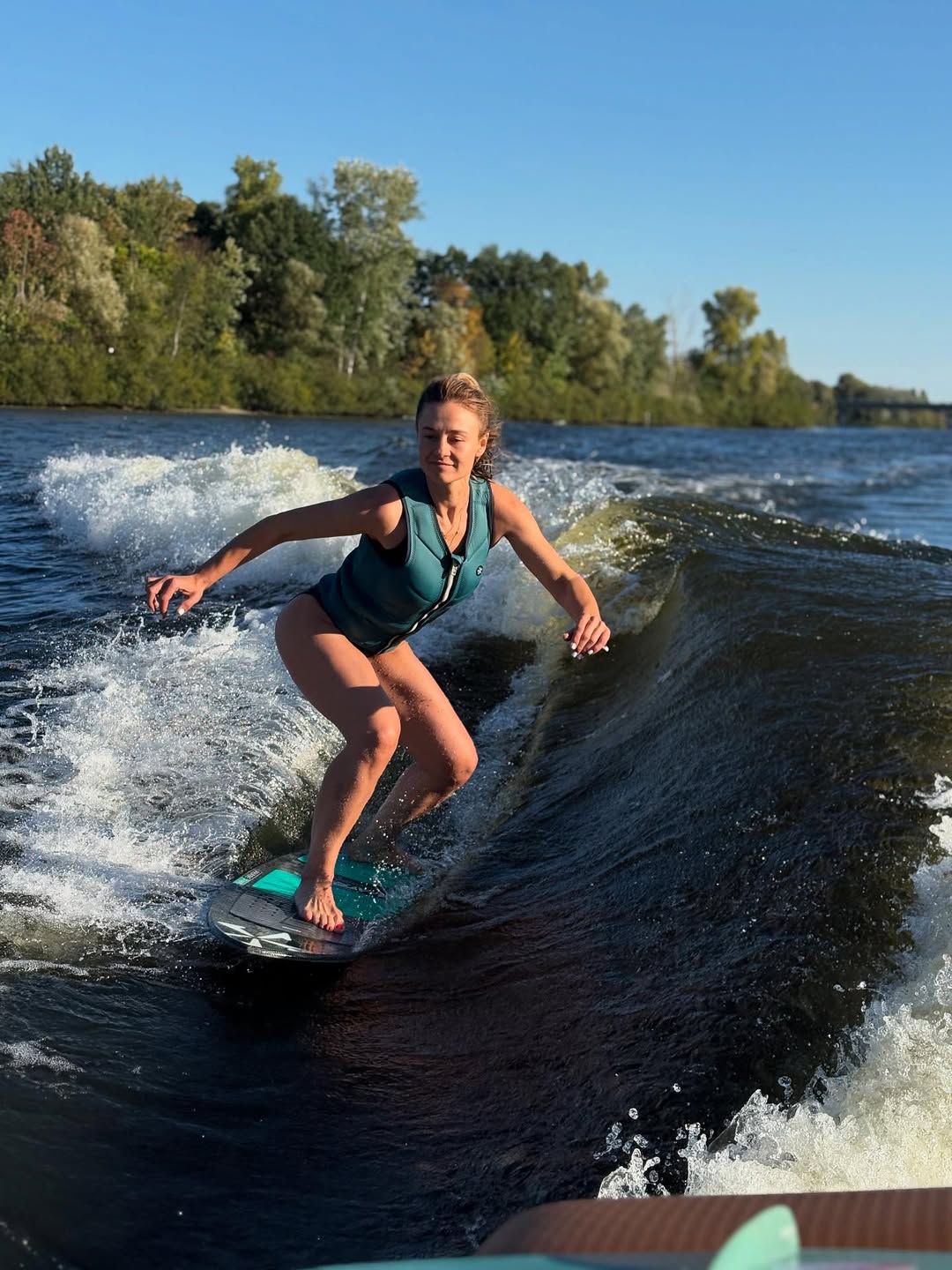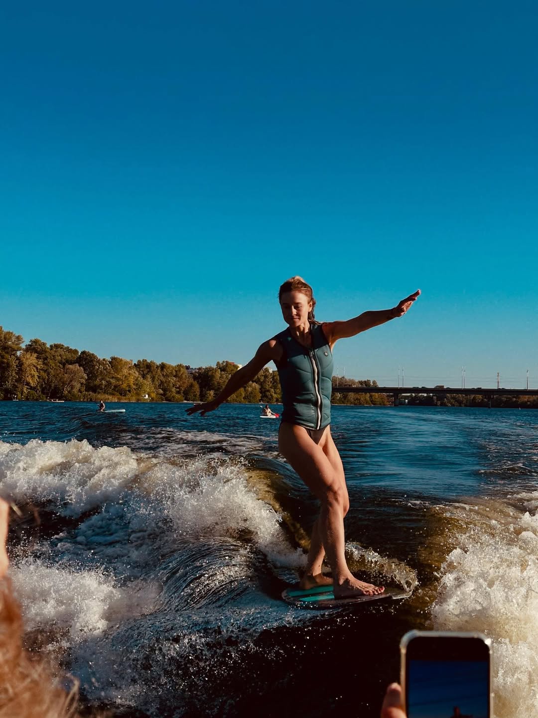 "На день рождения друзья и доска – все, что нужно для маленького большого счастья. Вода еще теплая и мягкая, Днепр очень красивый. Поеду дальше по-прежнему на своей волне", – написала она.