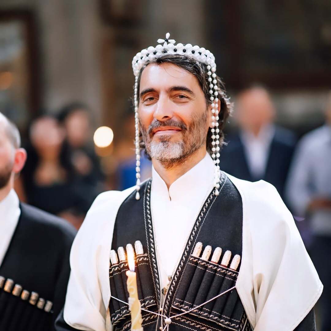 Шарманашвили впервые показала вблизи, как выглядела она и ее избранник во время венчания. Понти на свадьбе был одет в грузинский национальный костюм.
