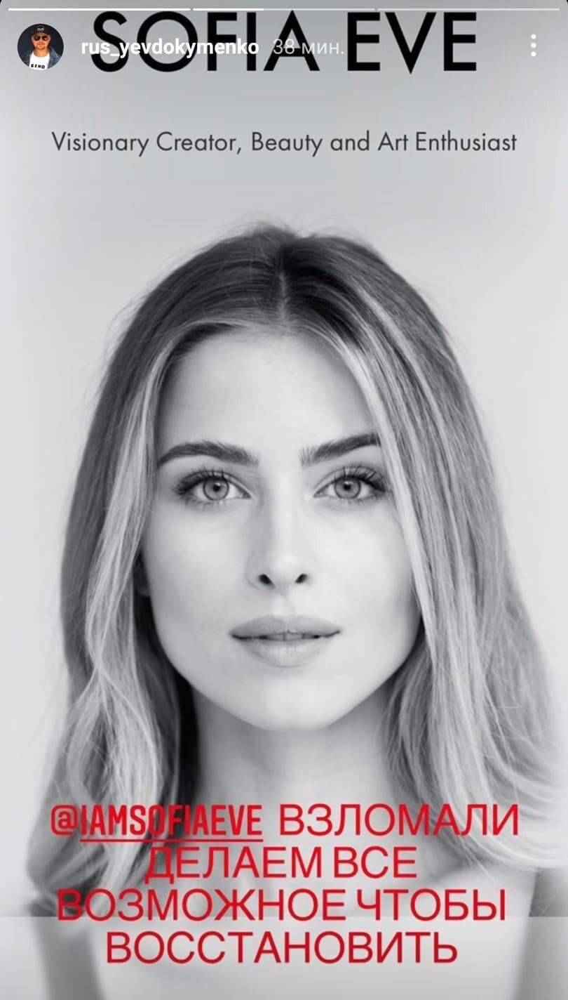 Сын украинской певицы Софии Ротару, продюсер Руслан Евдокименко 24 марта в Instagram Stories заявил, что страница его 19-летней дочери Софии Евдокименко в Instagram была взломана.
