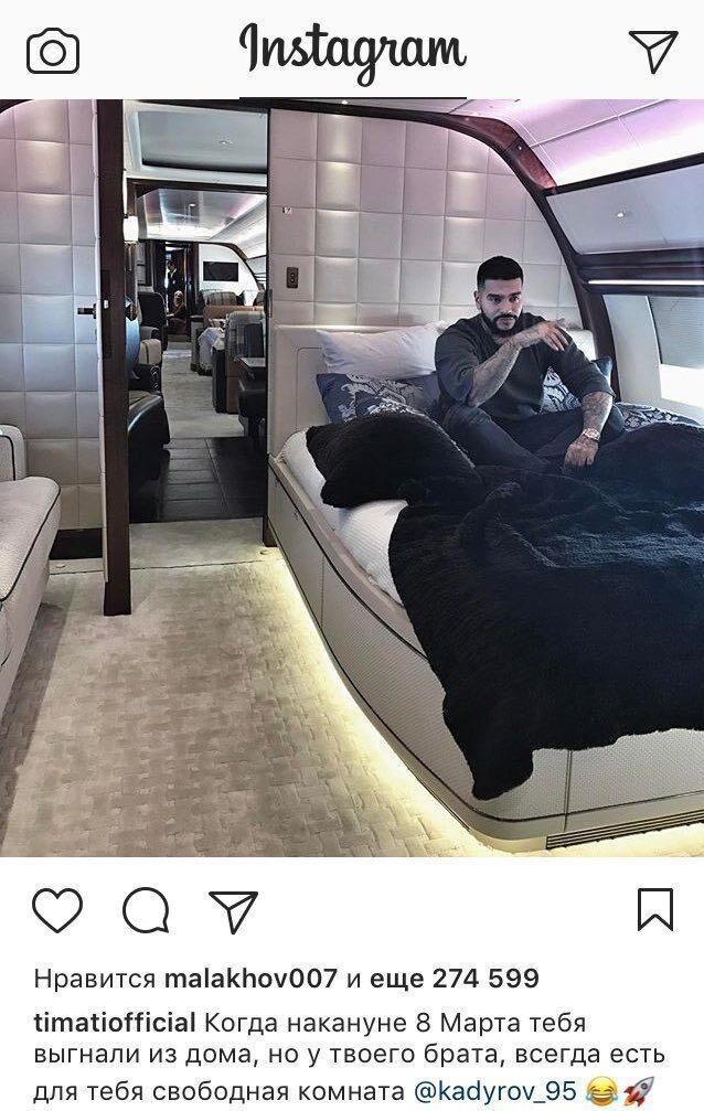 Тимати сфотографировался предположительно в самолете Кадырова