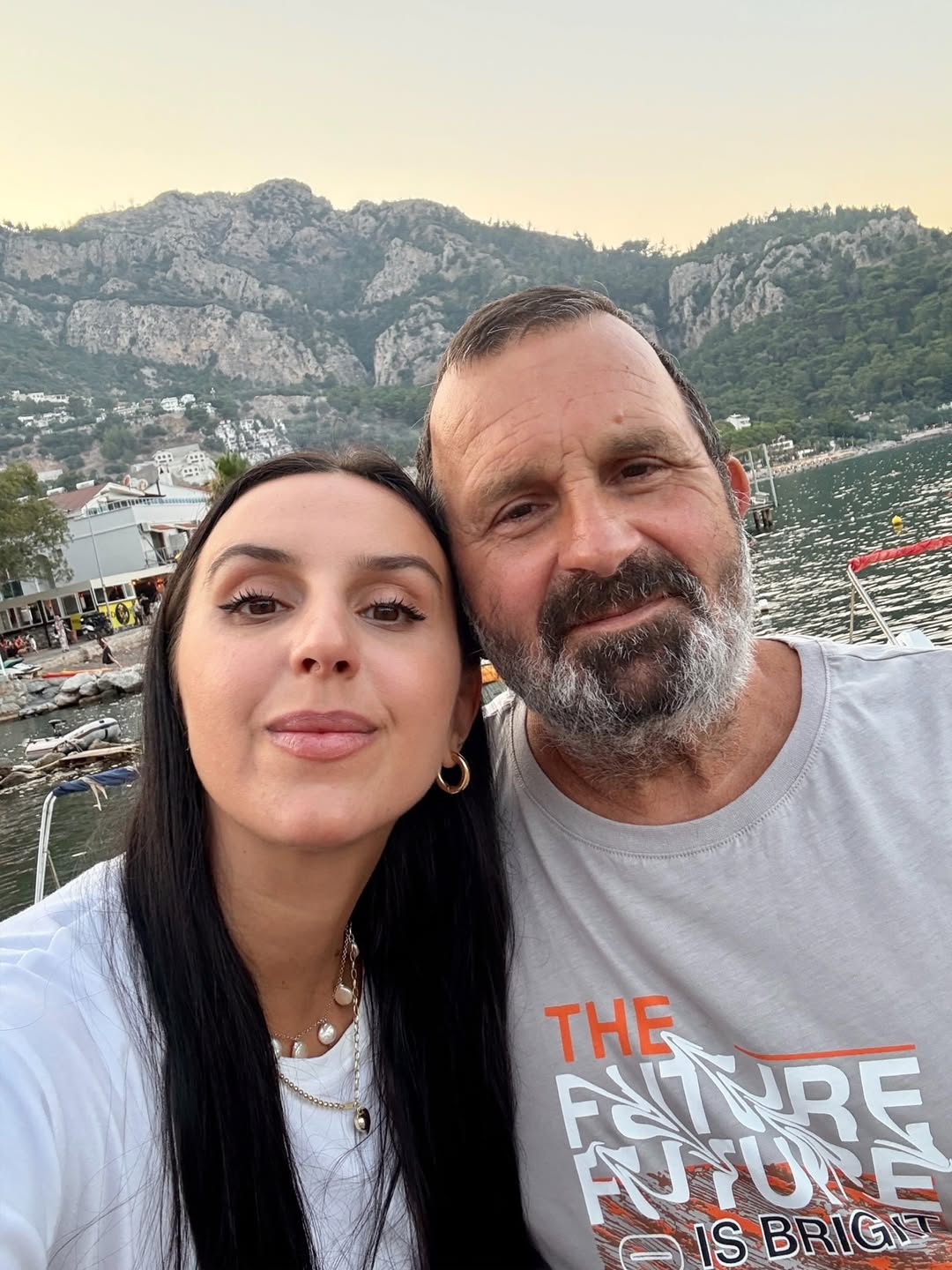 Также певица обнародовала свежее фото с отцом. Они позируют на фоне водоема и гор.