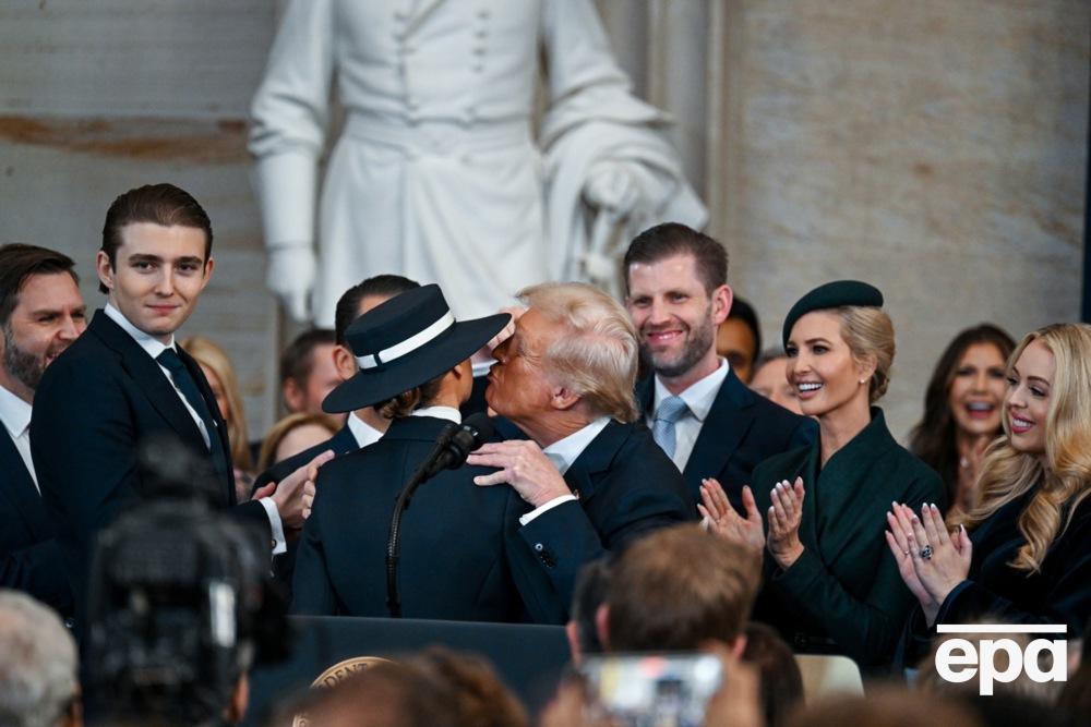 Президент США Дональд Трамп во время 60-й инаугурации президента в ротонде Капитолия в Вашингтоне обменялся воздушным поцелуем с женой Меланьей Трамп. Соответствующие снимки опубликовало агентство ЕРА, а видео этого момента завирусилось в сети.