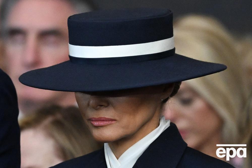 Меланья Трамп выбрала для инаугурации мужа приталенное пальто от американского дизайнера Адама Липпеса и шляпу с белой лентой от американского модельера Эрика Джавитса.