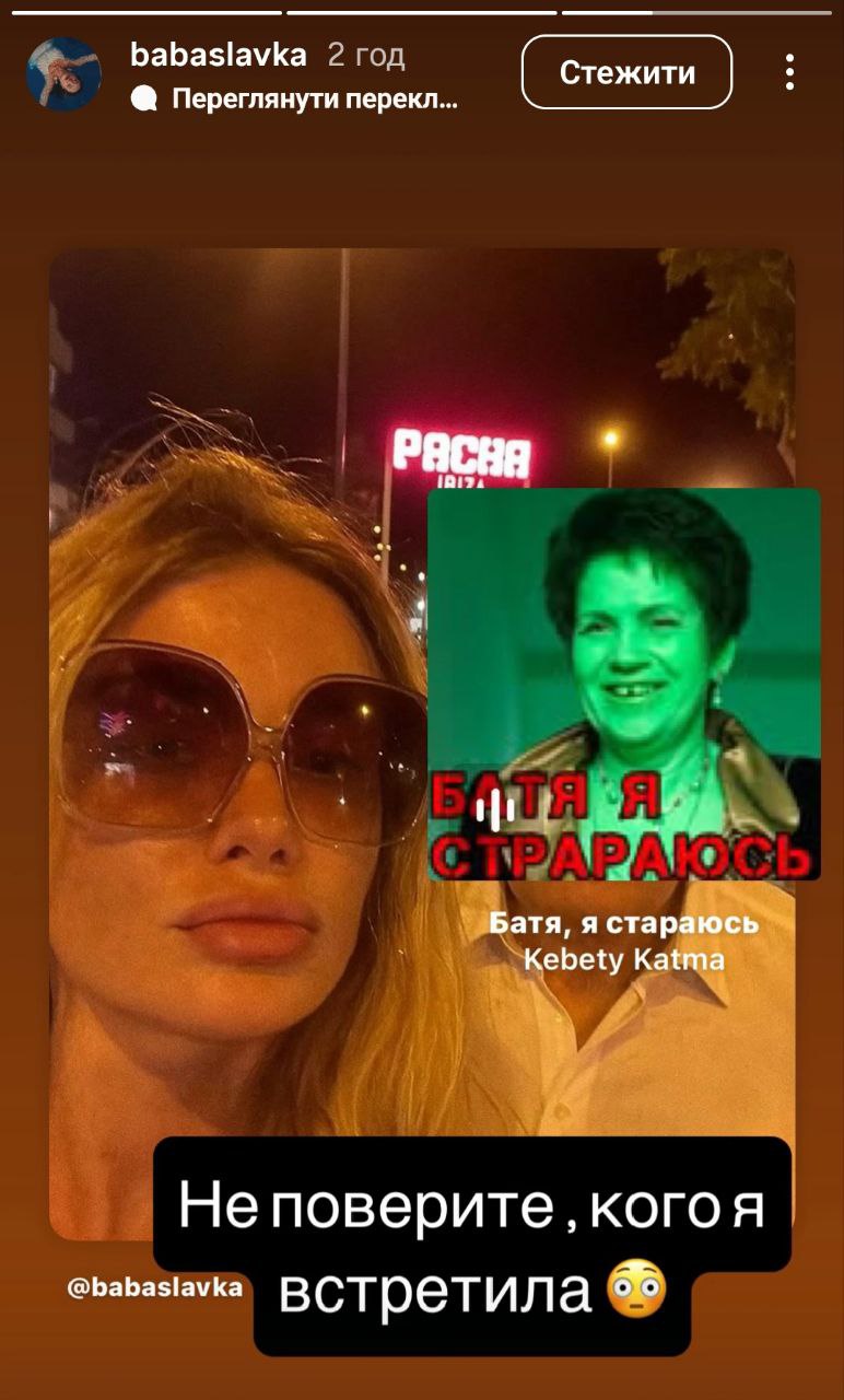 Также Каминская распространила это фото в Instagram Stories, добавив песню "Батя, я стараюсь" исполнителя Kebety Katma. Слова из этой композиции – это известное выражение супруги президента-беглеца Людмилы Янукович.