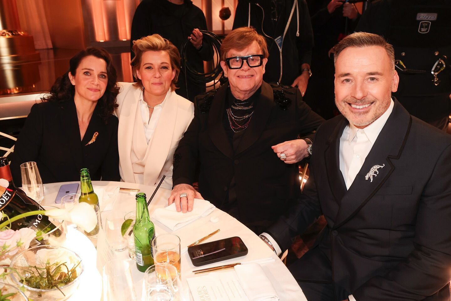 На фото артист позирует за столом в компании мужа и супружеской пары – американской певицы Бренди Карлайл и ее жены Кэтрин Шепард.