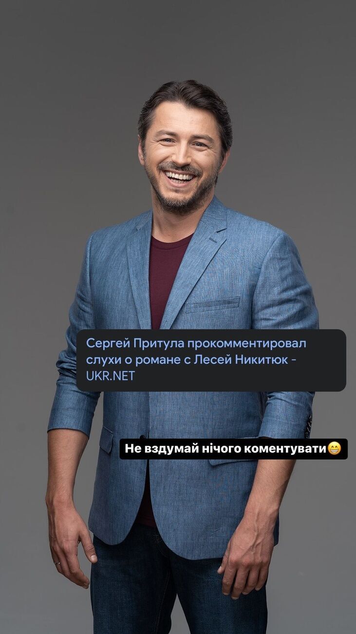 35-летняя украинская телеведущая Леся Никитюк 10 января в Instagram Stories поделилась снимком своего коллеги Сергея Притулы с заголовком статьи о том, что он прокомментировал слухи о романе с Никитюк.