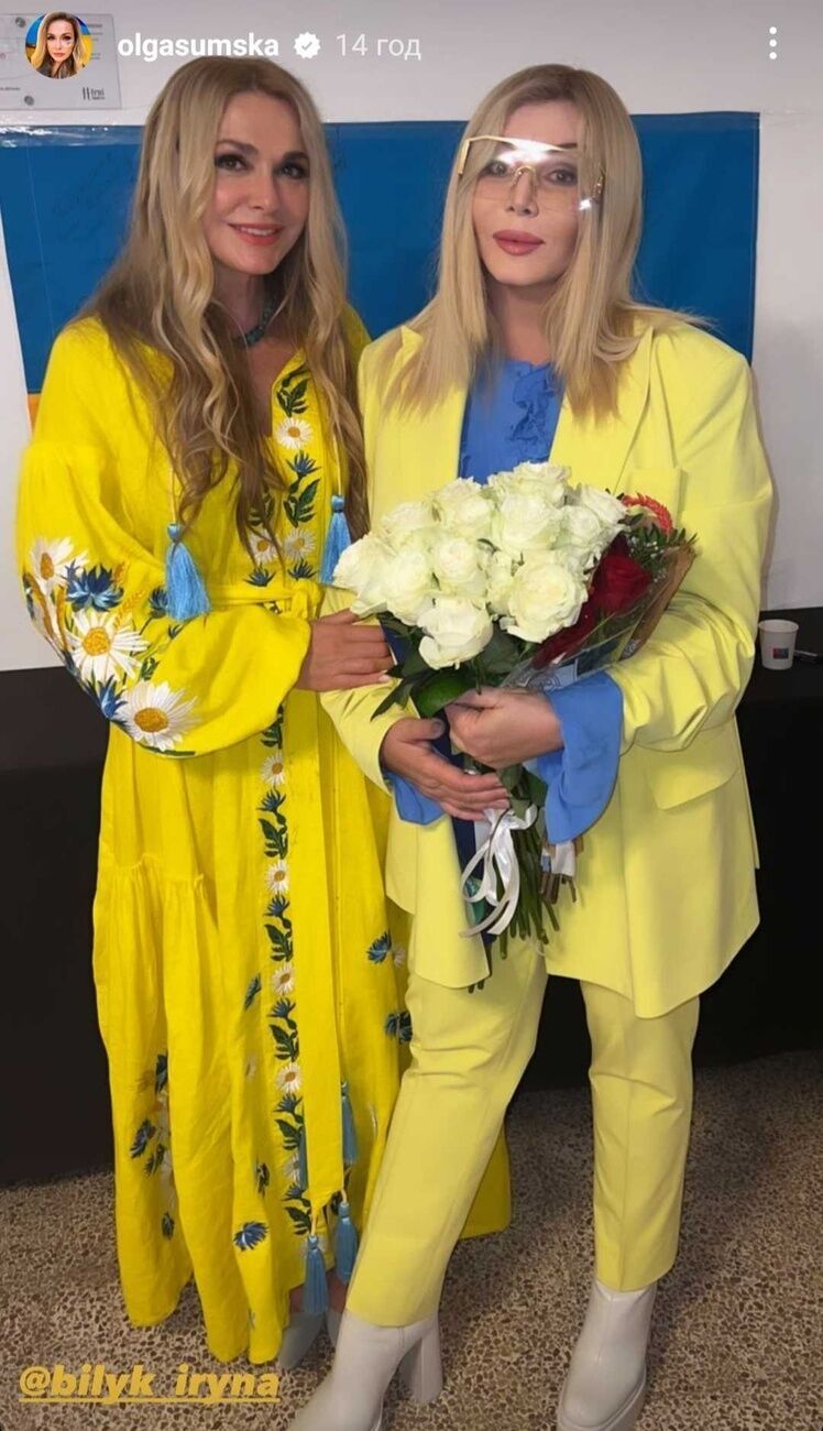 Украинская актриса Ольга Сумская 31 октября опубликовала в Instagram Stories фото, на котором она запечатлена с украинской певицей Ириной Билык.