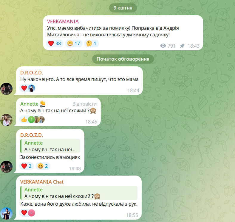 "Упс, должны извиниться за ошибку. Поправка от Андрея Михайловича – это воспитательница в детском садике", – говорится в новом посте.