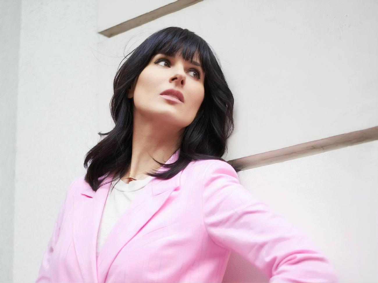 Ефросинина выбрала удлиненный приталенный жакет холодного розового цвета и белые брюки.