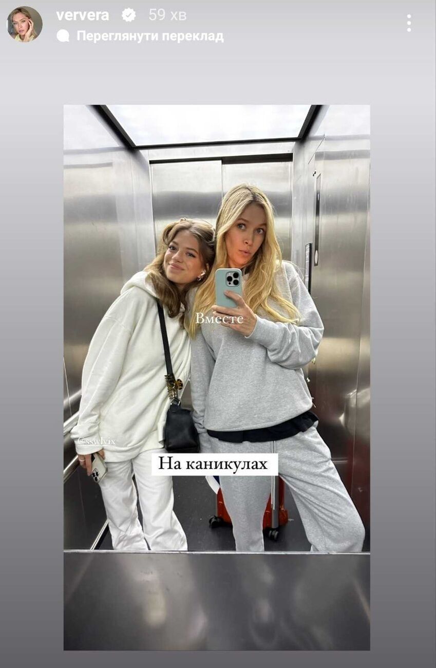 Украинская певица Вера Брежнева 27 октября в Instagram Stories разместила селфи, на котором запечатлена в лифте с 12-летней дочерью Сарой Киперман.