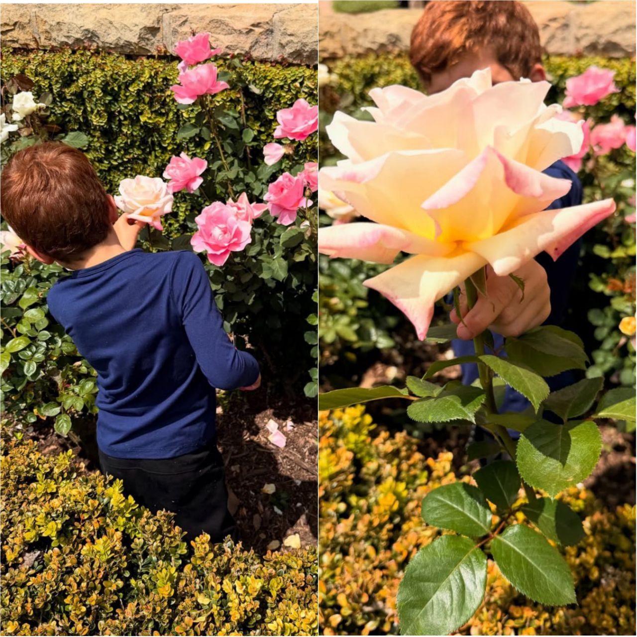 На других фотографиях зафиксирован сын супругов – Арчи, который позирует возле куста роз.