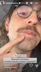 Украинский музыкант Dantes (Владимир Дантес) в Instagram Stories разместил ролик, в котором обратился к своим подписчикам.