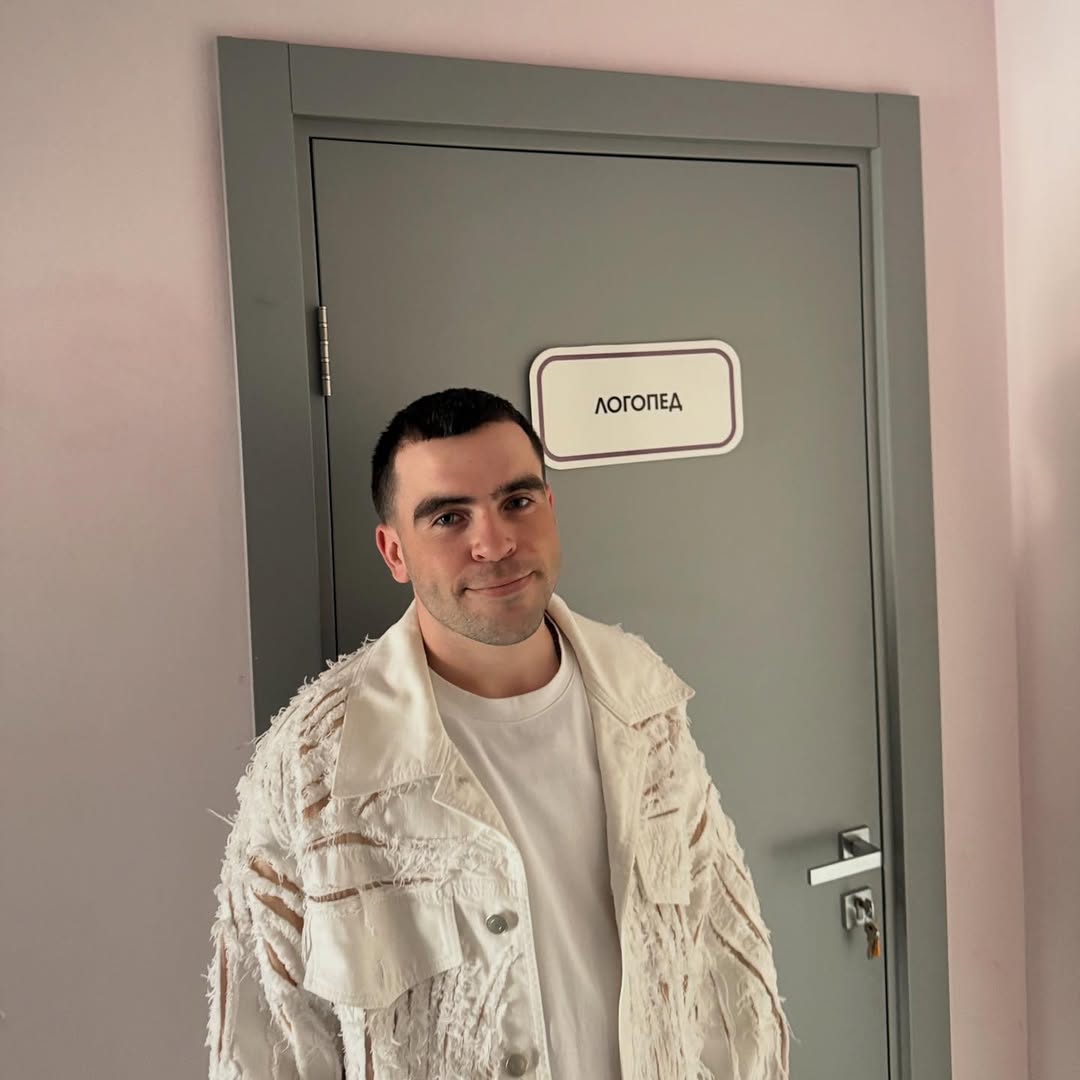 На фото Wellboy позирует на фоне кабинета логопеда.
