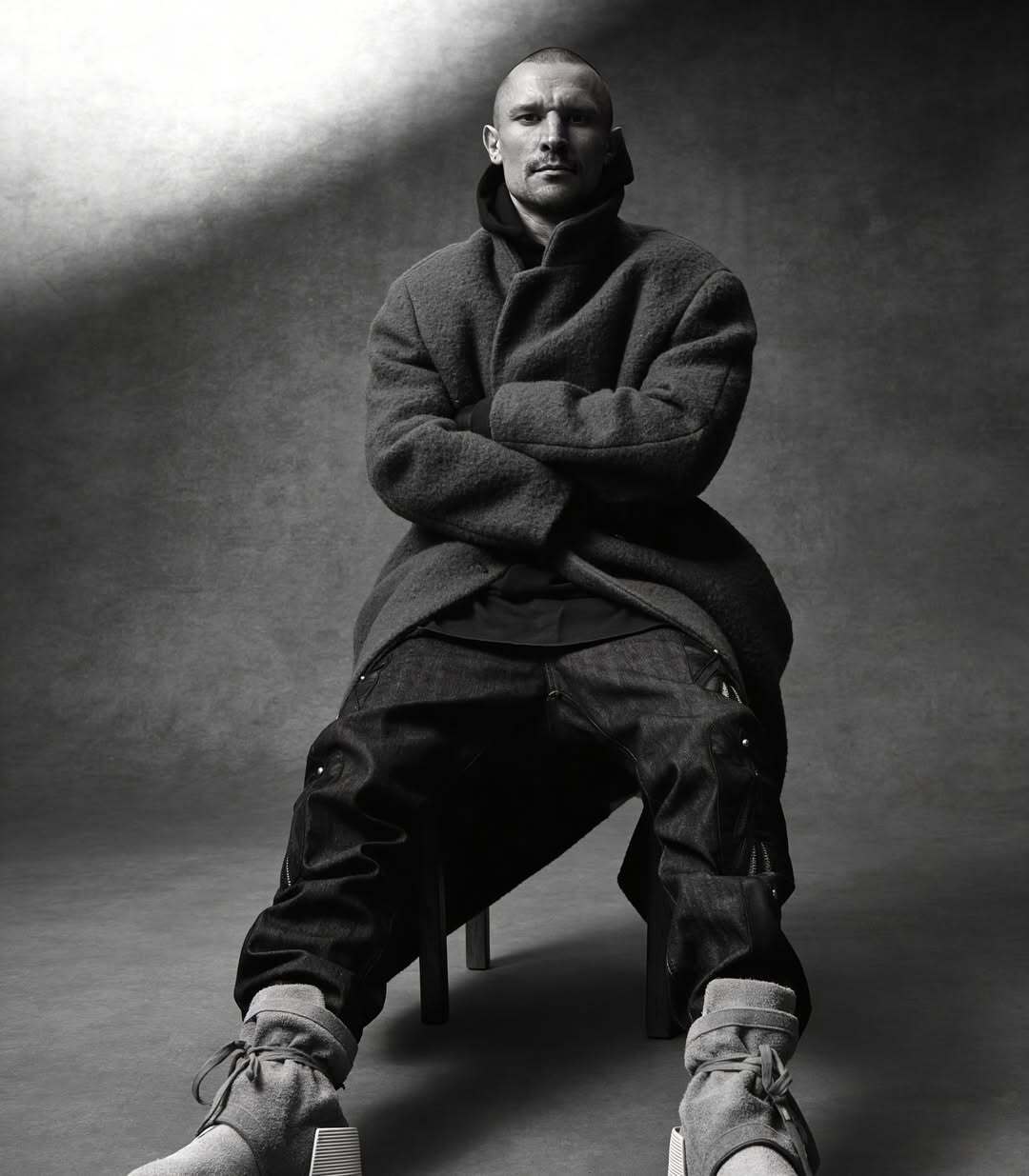 Также в подборке есть два черно-белых снимка. Для них актер позировал в студии.