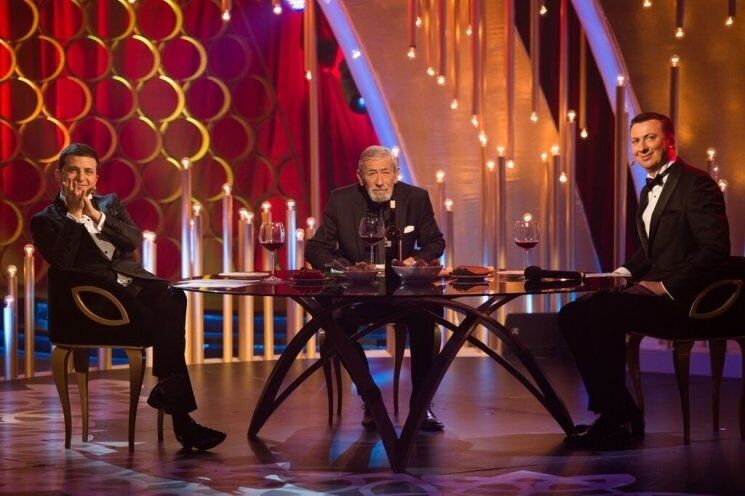 В столице закончился трехдневный марафон съемок проекта Владимира Зеленского и КО "Вечерний Киев". В последний день телевизионного процесса снимали выпуски, которые зрители увидят в канун новогодних праздников, поэтому все номера были связаны исключительно с этой тематикой. В гости к себе "квартальцы" пригласили Вахтанга Кикабидзе и французского актера Пьера Ришара, который гостил в Киеве почти три дня. В первый день он презентовал свое авторское вино, которое будет продавать в нескольких украинских ресторанах (по цене от 380 до 700 грн за бутылку), а на следующий отправился к Зеленскому на съемки "Вечернего Киева".