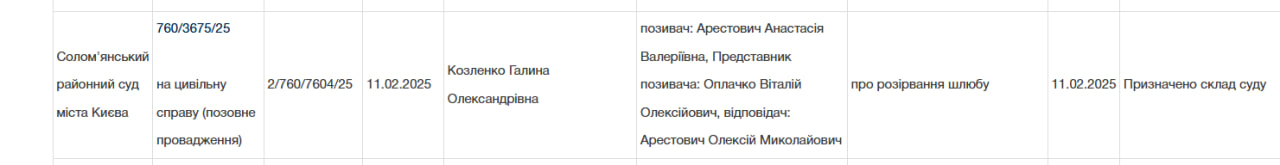 Анастасия Арестович обратилась с заявлением о разводе в Соломенский районный суд Киева 11 февраля. Дата судебного заседания пока что не назначена. Пара не комментировала решение расторгнуть брак.