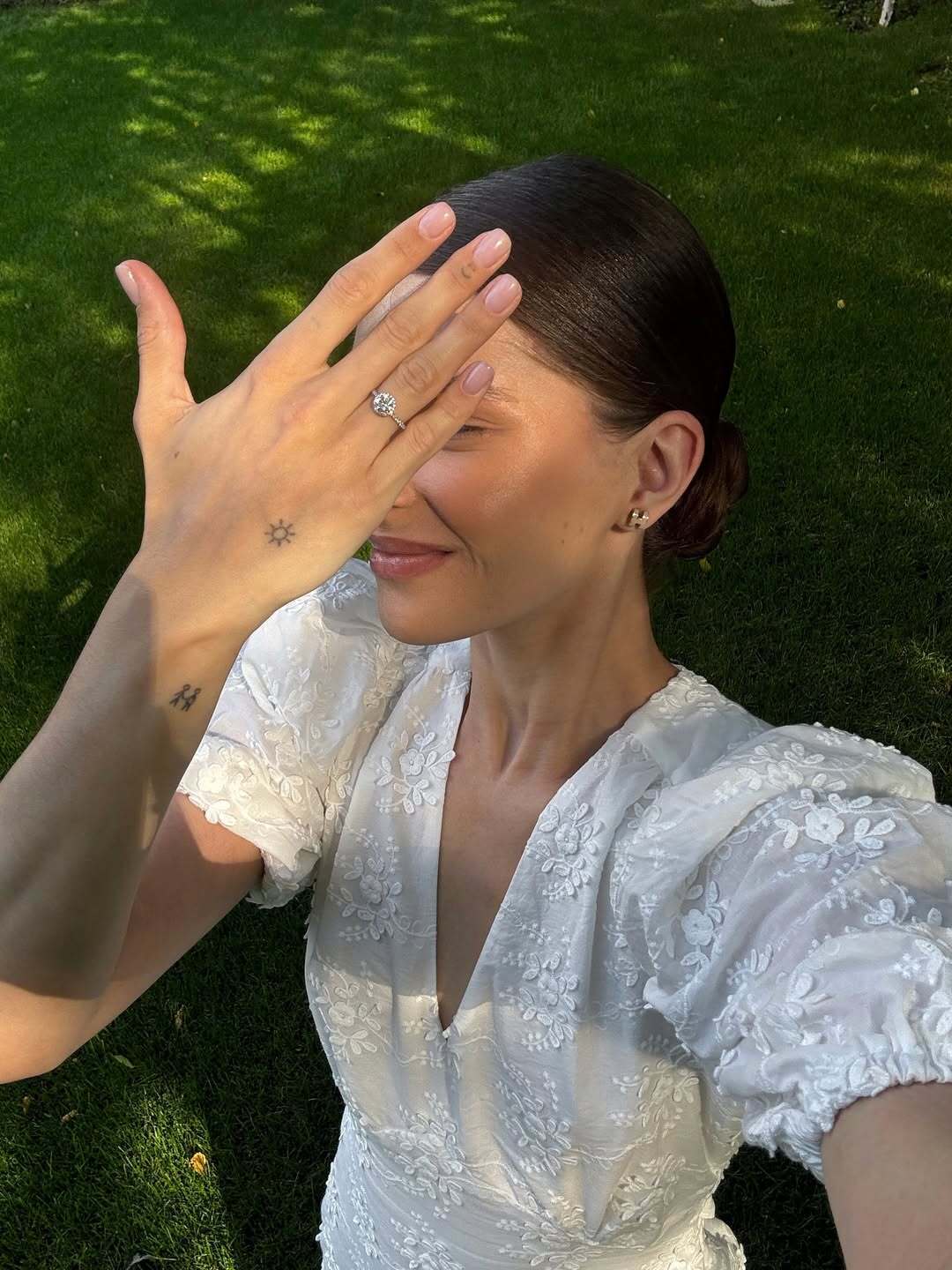 "Как вы знаете, у меня не было предложения пожениться. Мы просто сидели на диване, и Вова сказал: "А давай завтра распишемся?" Но я, как и большинство девушек, конечно, хотела кольцо и чтобы он встал на одно колено, поэтому недавно я получила предложение повенчаться", – написала Катерина Остапчук.