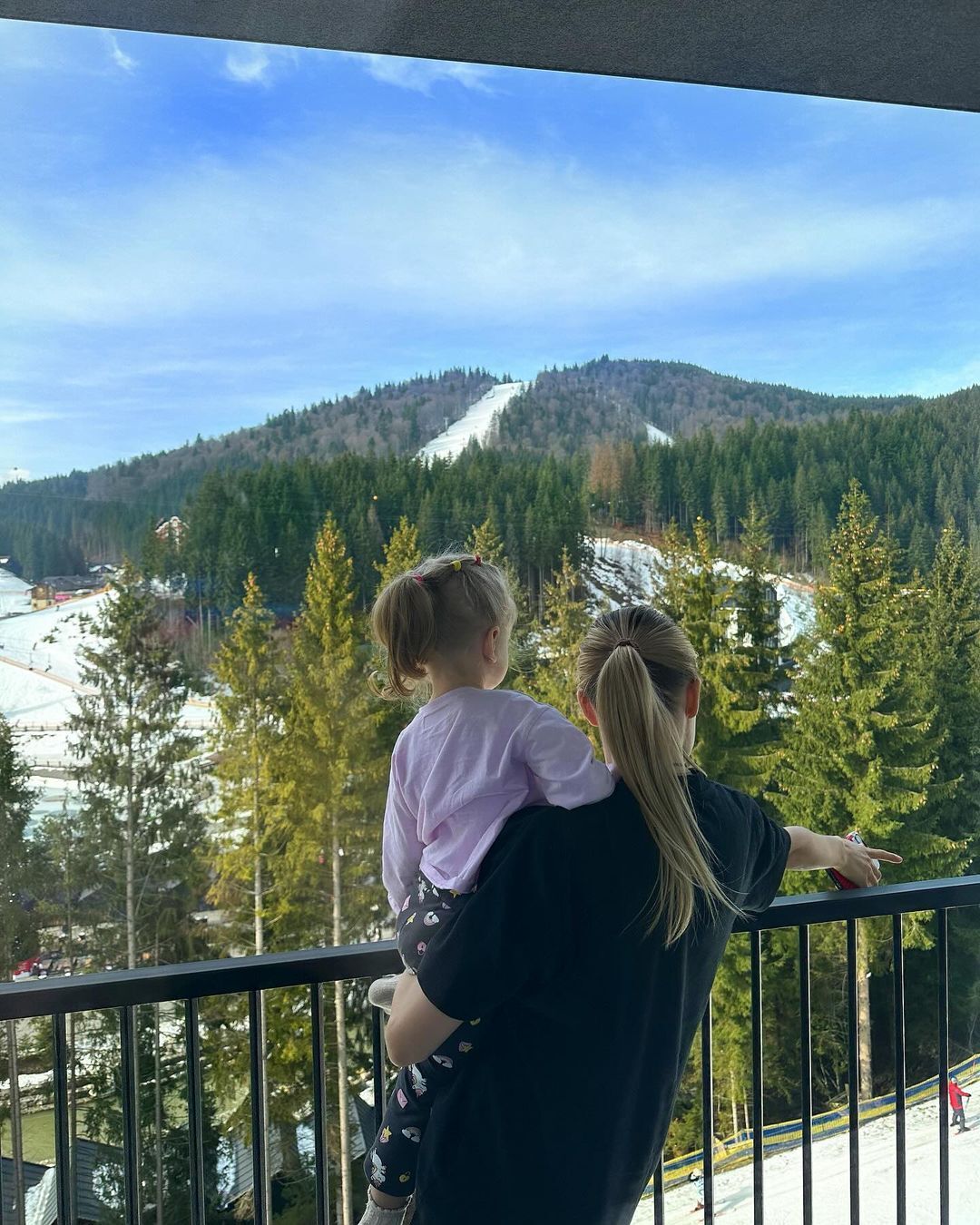 На одном из снимков мать и дочь запечатлены на подъемнике.