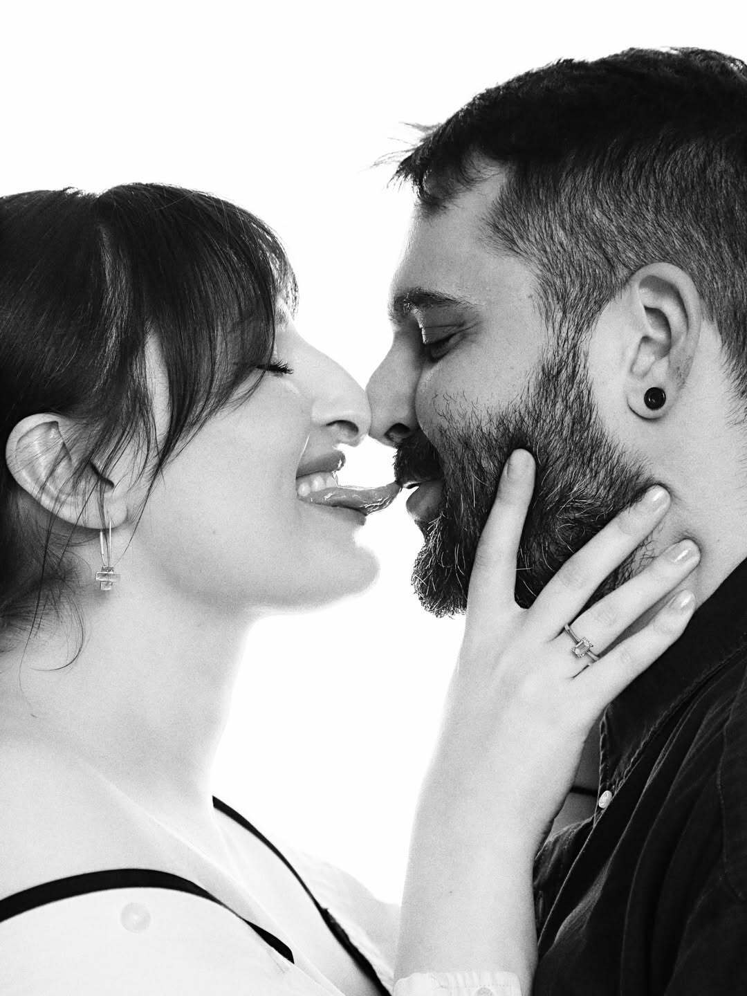 На заглавном фото 33-летняя артистка изображена во время поцелуя с любимым, нежно обнимая его за шею и засветив при этом кольцо на безымянном пальце.