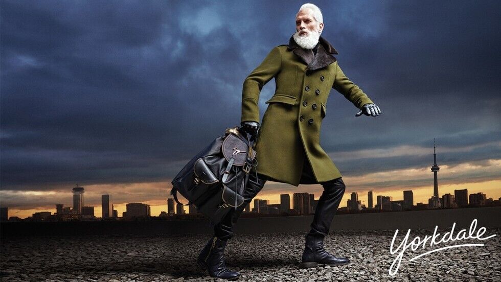 Канадская модель Пол Мейсон стал лицом рекламной фешн-компании в торговом центре Yorkdale. 51-летний мужчина позирует в одежде брендов DSquared2, Dolce & Gabanna, Ferragamo и Burberry, бутики которых расположены в торговом центре.