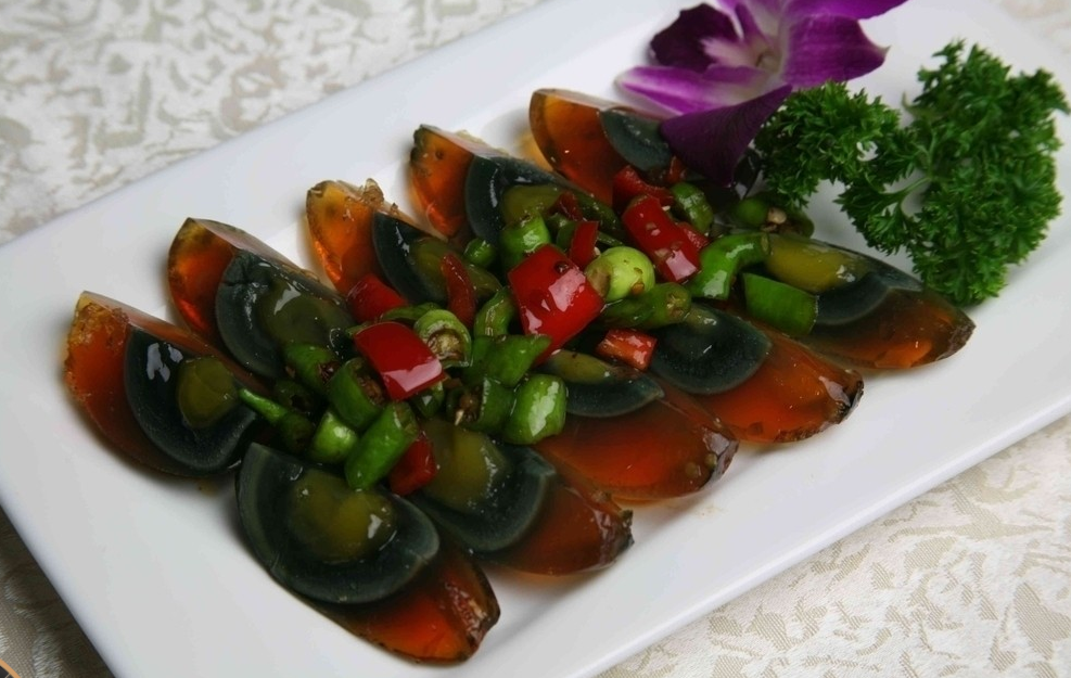 Утиные, куриные или перепелиные яйца хранят на протяжении двух месяцев в глине, песке и соли. В такой среде внутренняя часть яйца превращается в желе. Желтки становятся темно-зелеными.Предварительно яйца окунают в смесь чая, соли и золы.Такое блюдо имеет резкий аммиачный запах и консистенцию пасты.