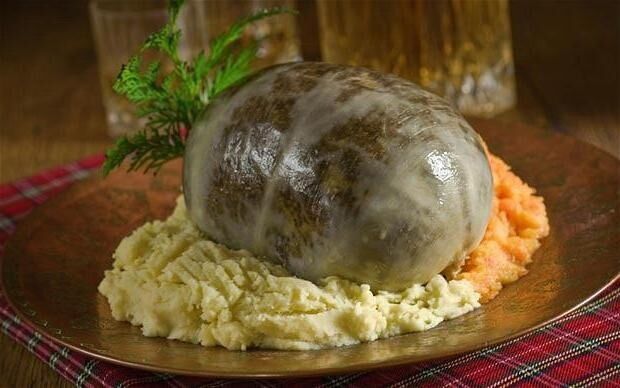 Это национальное блюдо готовят в Шотландии испокон веков. Хаггис представляет собой бараньи потроха, включающие сердце, печень и легкие. Эти составляющие смешивают с измельченным луком и салом. Такой смесью начиняют бараний желудок. Подают хаггис с алкогольными напитками.