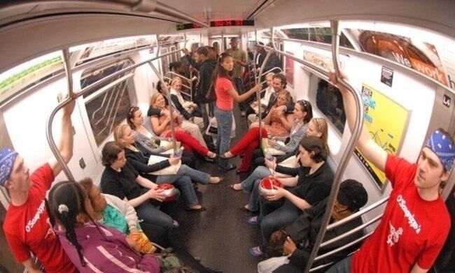 В нью-йоркском метро 15 пар близнецов устроили флешмоб, сутью которого было одно только присутствие таких пар в вагоне. Двойняшки, одевшись в одинаковые наряды, изображали с абсолютной точностью движения друг друга и в унисон показывали различные жесты. Люди реагировали по-разному: кто-то улыбался, а кто-то пересаживался в другой вагон.Стой, где стоишь!
