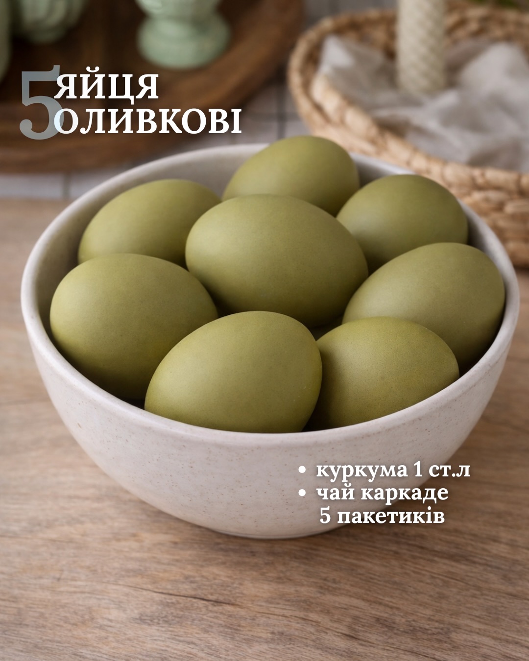 Оливковые крашенки будут, если приготовить настой из одной столовой ложки куркумы и чая каркаде.