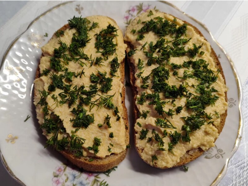 - Паштет можно намазать на хлеб или запеченный картофель, украсить зеленью и подавать к супу.
