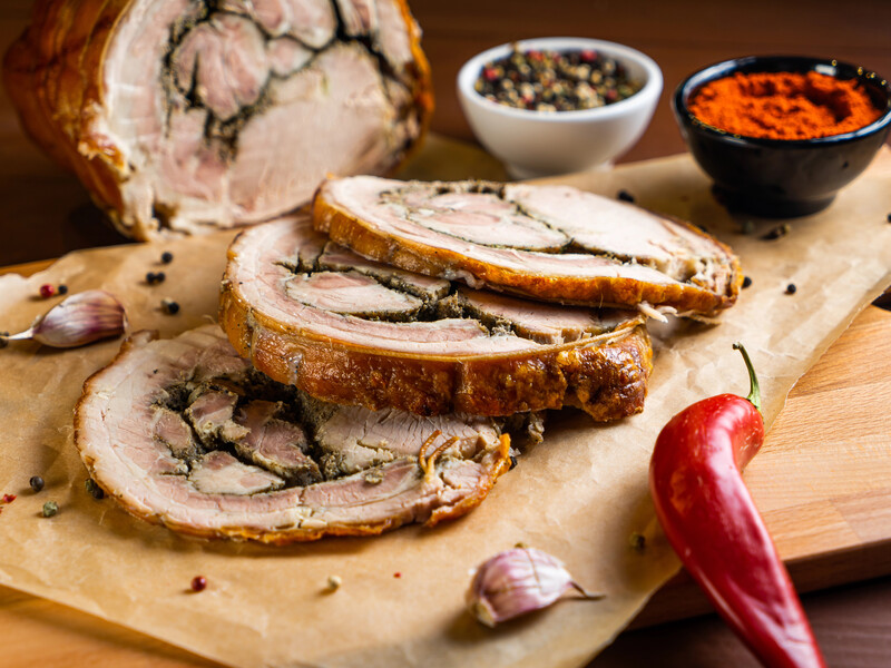 "Вкусно так, что за щеки не оттащишь". Пасхальный запеченный рулет из щековины