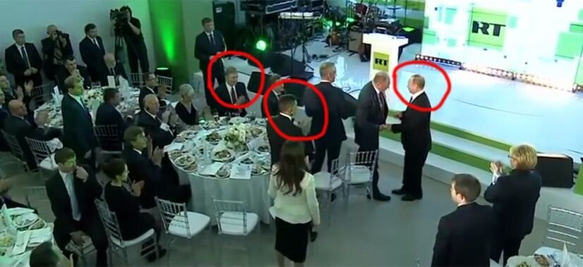 Everyone saw that famous photo of General Flynn seating next to Putin during that event in December 2015. But no one has ever wondered what all those people were watching so attentively. As a matter of fact, they were looking at the TV screen that showed Julian Assange, WikiLeaks founder, who had been invited but could not attend personally. Assange was permanently employed by RT and, as well as Flynn, had received payments from the Russian Government via RT.