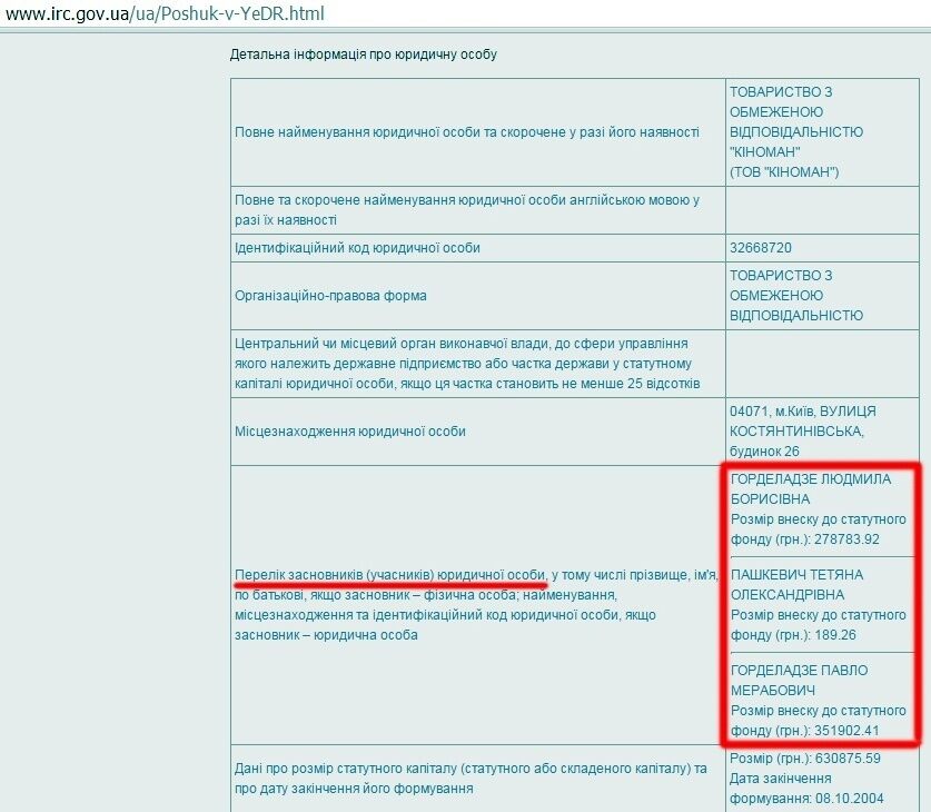 Another important detail: Kinoman Ltd. is a limited liability company, which, according to Gordeladze, represents the total of the cinema’s personnel, however, the personnel is registered as ‘wage and salary employees’, i.e. they do not have the right to vote. It is unlike three co-founders of Kinoman Ltd. who own the controlling interest – Liudmila Borisovna Gordeladze herself (with a contribution to the authorized fund amounting to UAH 278,783), her son Pavel Merabovich Gordeladze (a contribution of UAH 351,902) and a Tatiana Aleksandrovna Pashkevich whose contribution to the authorized fund was as much as... UAH 189 (!). Thus, Kinoman is a family business of Liudmila Gordeladze and her son Pavel.