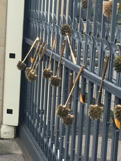 On April 16, several activists from “Kaputin” group decorated Russian embassy’s fence in Prague with golden toilet brushes and installed a statue of Vladimir Putin, the President of the RF, seating naked on the golden toilet on the marble pedestal. The group reported the action on its Facebook page. The activists protest against imprisonment of Russian opposition leader Alexei Navalny, violation of human rights in Russia and its aggression against Ukraine.