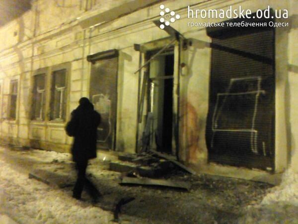 On the night of December 10 in Odessa in office center on Admiral's prospect a strong explosion thundered. Power of the explosive device corresponded about 1 kg in a trotyl equivalent. The room which was rented by the volunteer organization "Dalia's Hundred Severin", is almost completely destroyed. The surveillance camera recorded as the unknown woman leaves explosive near office of volunteers.