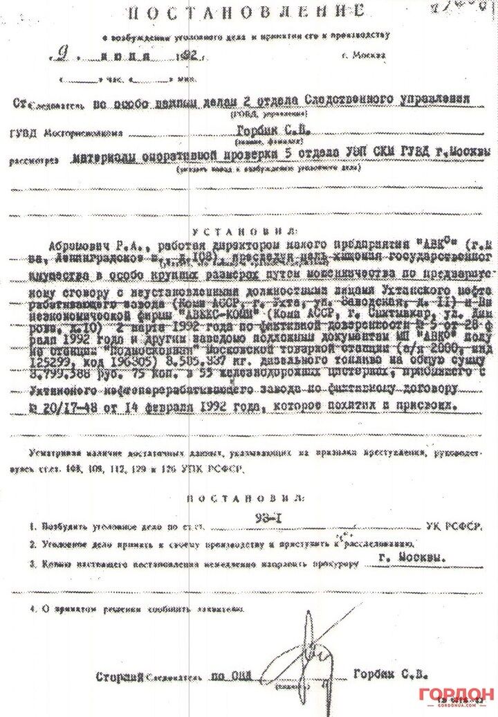 The Russian government officials in the Prosecutor’s Office (which was the same office as the one formerly under the auspices of the Soviet government) considered everyone conducting business successfully in those murky times as prima facie criminals and initiated criminal proceedings constantly. It was genuinely challenging to determine who was and who was not a criminal. For example, on June 9, 1992, criminal proceedings were initiated in Moscow against Roman Abramovich, alleging that he stole 55 tankers with diesel fuel.