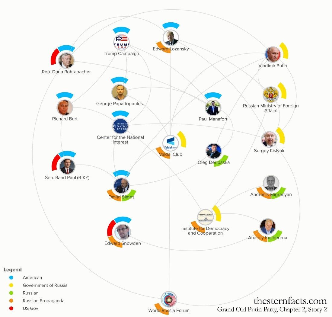 "A routine investigation revealed that Jeff Sessions, US Attorney General, forgot to mention in his application for security clearance one of the meetings with the Russian Embssador Sergei Kislyak. But it was not an ordinary meeting. […] It so happens that in the same four-dimensional point of place and time, the world trajectories of several other noteworthy individuals had crossed – namely, of Paul Manafort, Carter Paige, Michael Flynn, Jared Kushner, Donald Trump, and – finally – the main person who became a friend and a leader of this jolly group from then on – Dimitri Konstantinovich Simis, a former Deputy Secretary of the Komsomol Organization [All-Union Leninist Young Communist League] at the Institute of World Economy and International Relations and an international lecturer at the Moscow City Committee of the Communist Party of the Soviet Union, who, while still in that role, suddenly applied for US asylum in 1972. During his many wandering years away from the Motherland, Dimitri Konstantinovich had morphed into Dimitri Simes, a President and CEO of The Center for the National Interest.