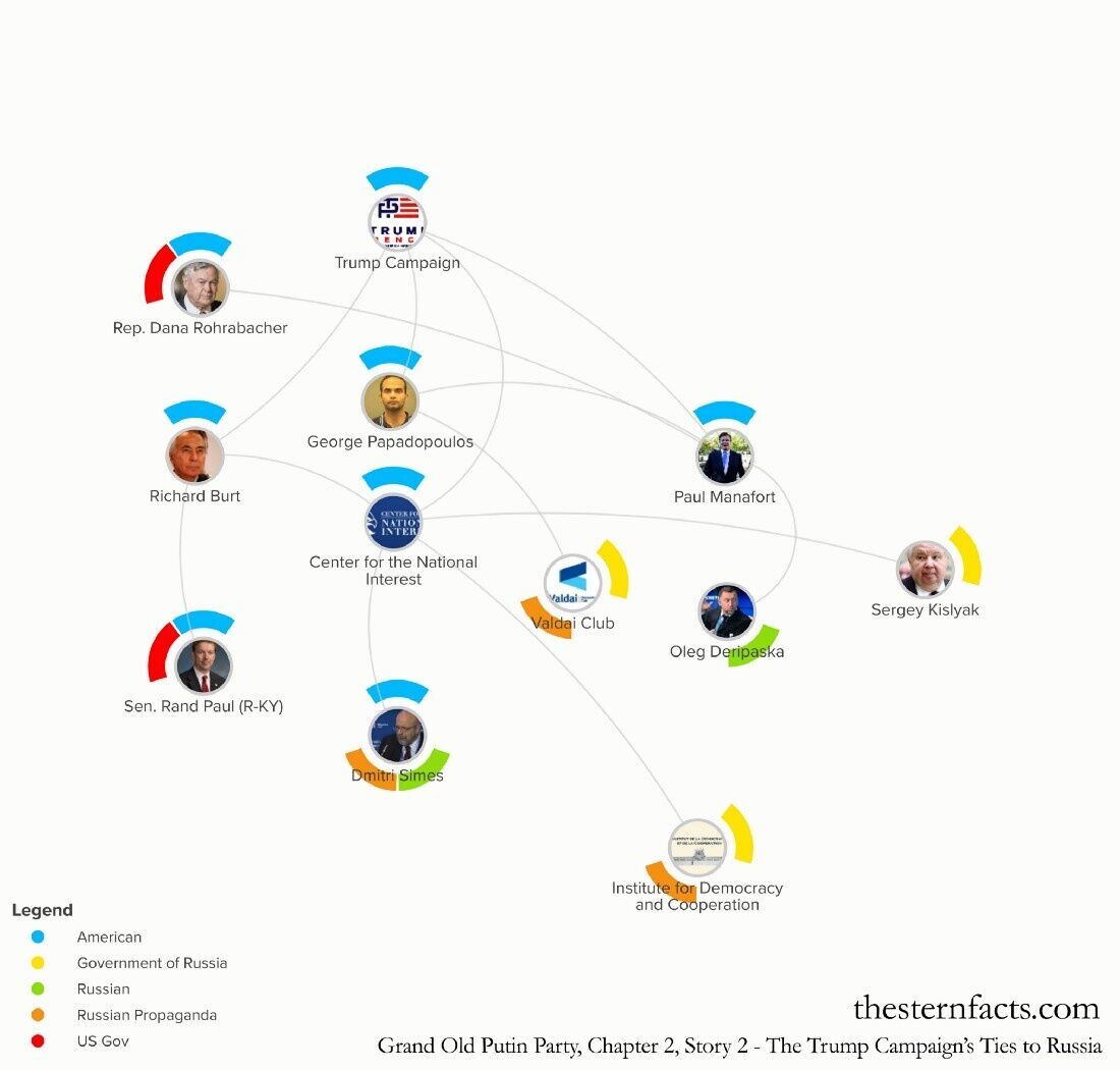 "In 2005 two English-language Russian sources, a Russian-American newspaper Kommersant and Moscow Times reported that “Simes had met with the Kremlin adviser Gleb Pavlovsky and Russian oligarch Oleg Deripaska — Putin’s close ally, a man on FBI organized crime list and Paul Manafort’s former business partner” — to discuss forming a Russian-funded think tank.