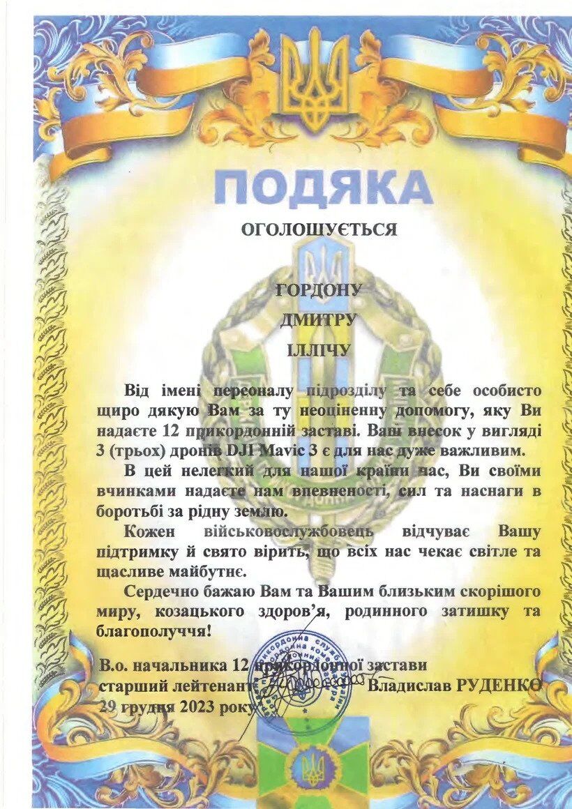 Мы ценим ваше доверие, поэтому ведем прозрачную отчетность: регулярно публикуем фотоотчеты, видео с передовой и официальные благодарности от военных. Каждая ваша гривна работает на победу и вы всегда можете увидеть, куда направлены собранные средства.