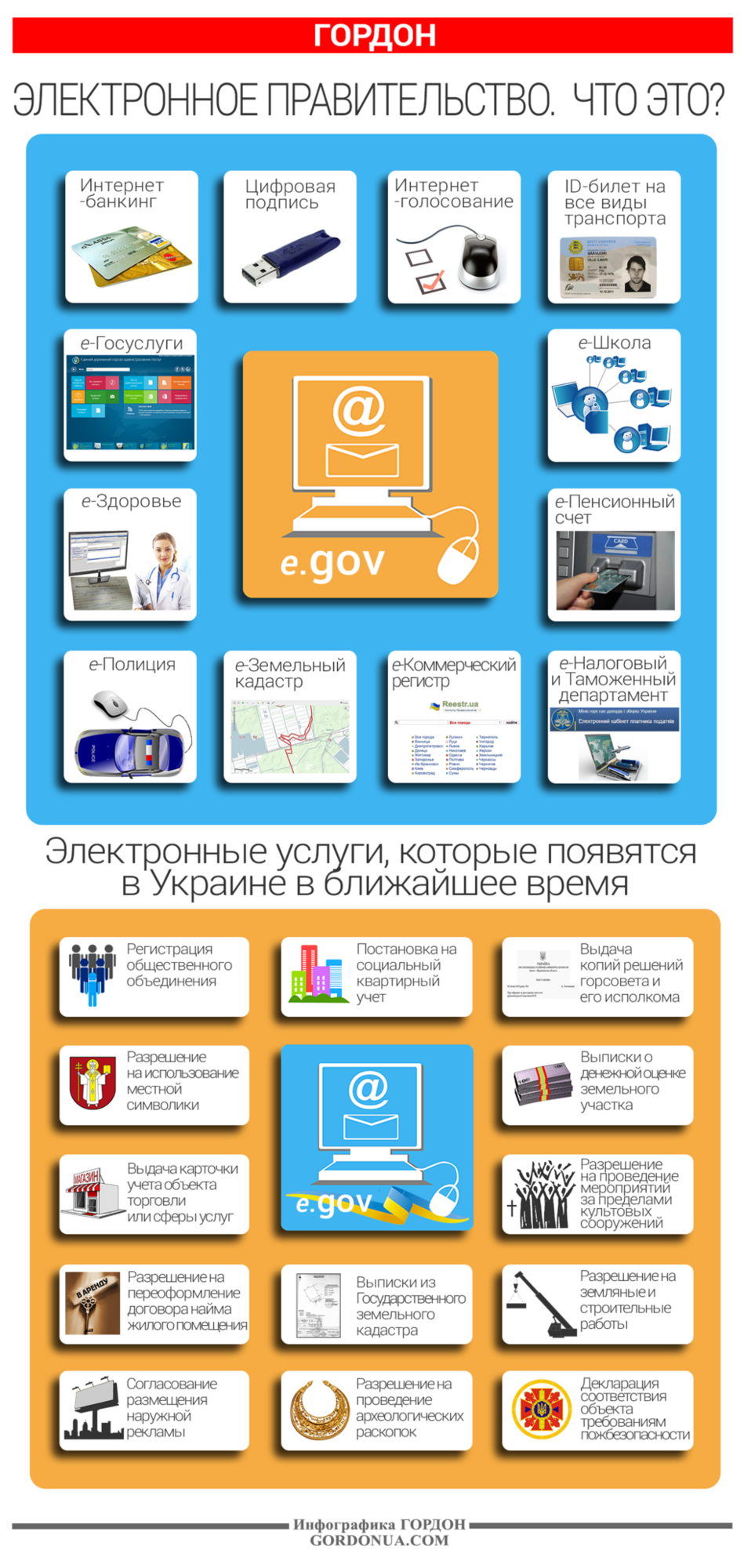 С начала июня в Украине появятся первые элементы электронного правительства. Ряд разрешительных документов и справок можно будет заказать не посещая государственные службы. Воспользоваться услугой возможно через виртуальный кабинет своего банка. Внедрением электронных услуг занимаются "Приватбанк" и "Ощадбанк". Какие услуги станут доступными для заказа через интернет, смотрите в инфографике "ГОРДОН". Читайте также интервью экс-советника Минэкономразвития главы общественной организацией ICT Competence Center Яники Мерило, которая помогает органам власти внедрять E-Government.